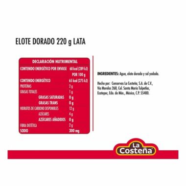 Lata de elote dorado de 24pzs/220g de La Costeña.