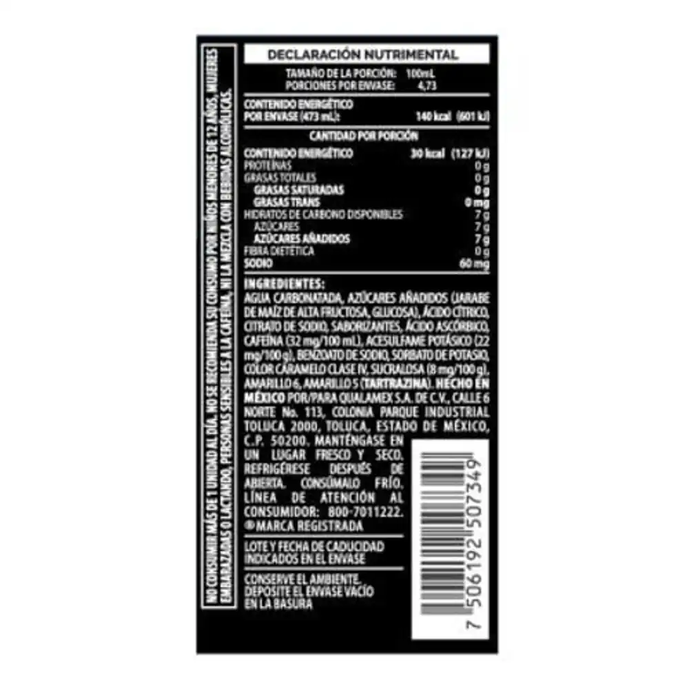 – No se recomienda para menores de 12 años, mujeres embarazadas o lactando y personas sensibles a la cafeína
