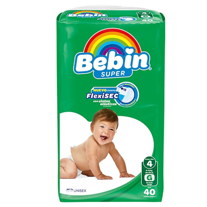Pañales Bebin Super talla G con 4paq/40 piezas.