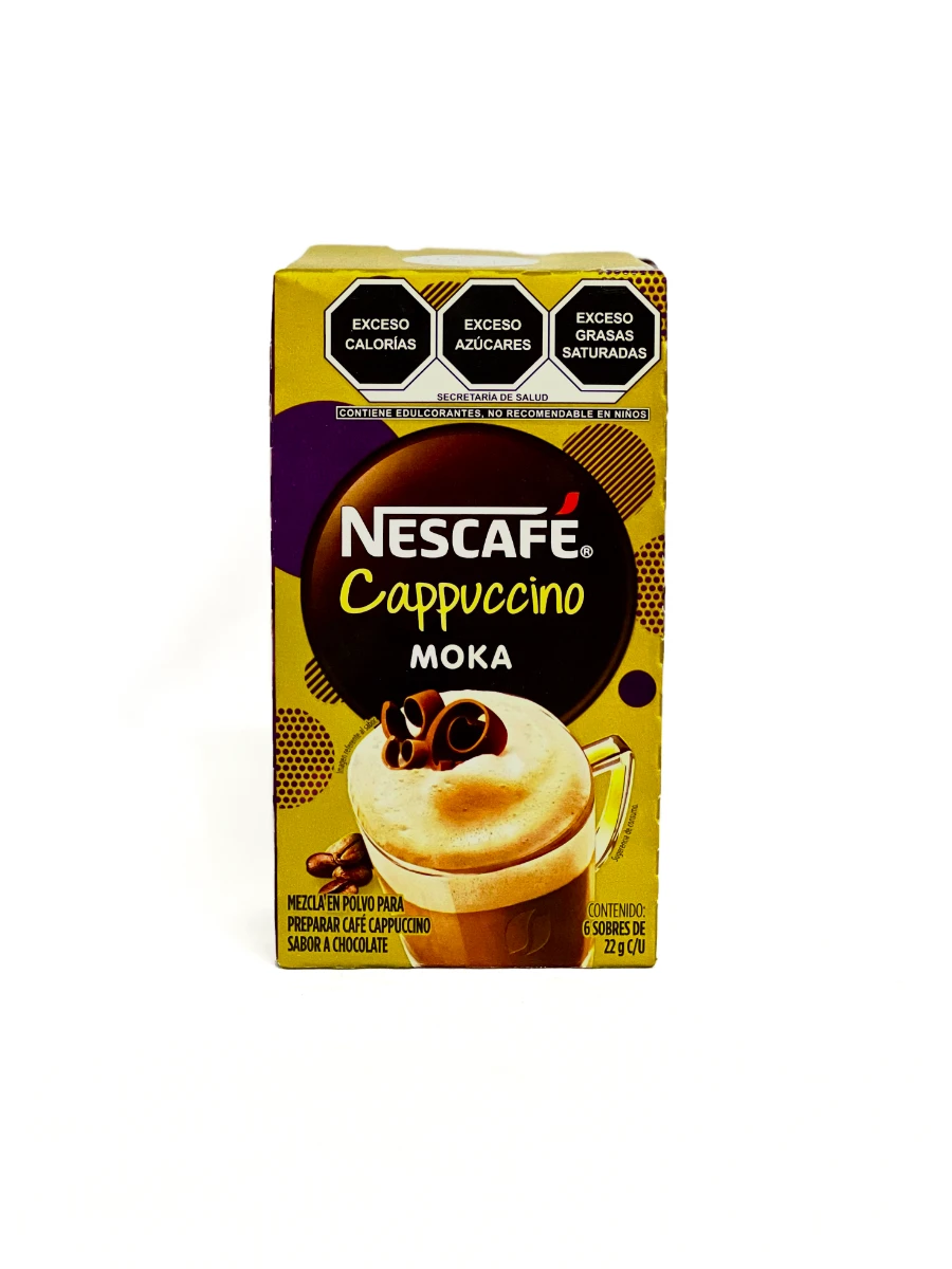 Mezcla en polvo para preparar café cappuccino moka sabor chocolate 6 sobres de 22 g c/u de Nescafé.