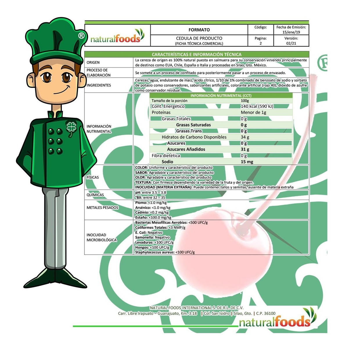 La apariencia de nuestras cerezas tipo marrasquino con tallo es elegante y notable a primera vista, cuentan con un tratamiento especial en todo el proceso, desde la selección del fruto, hasta su envasado.
