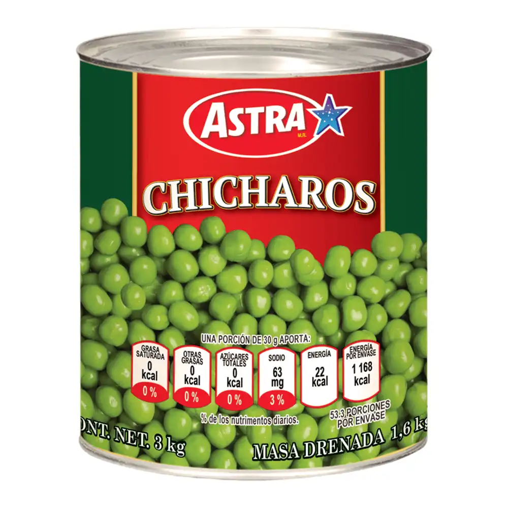 Lata de chícharos de Astra 6pzs/3kg.
