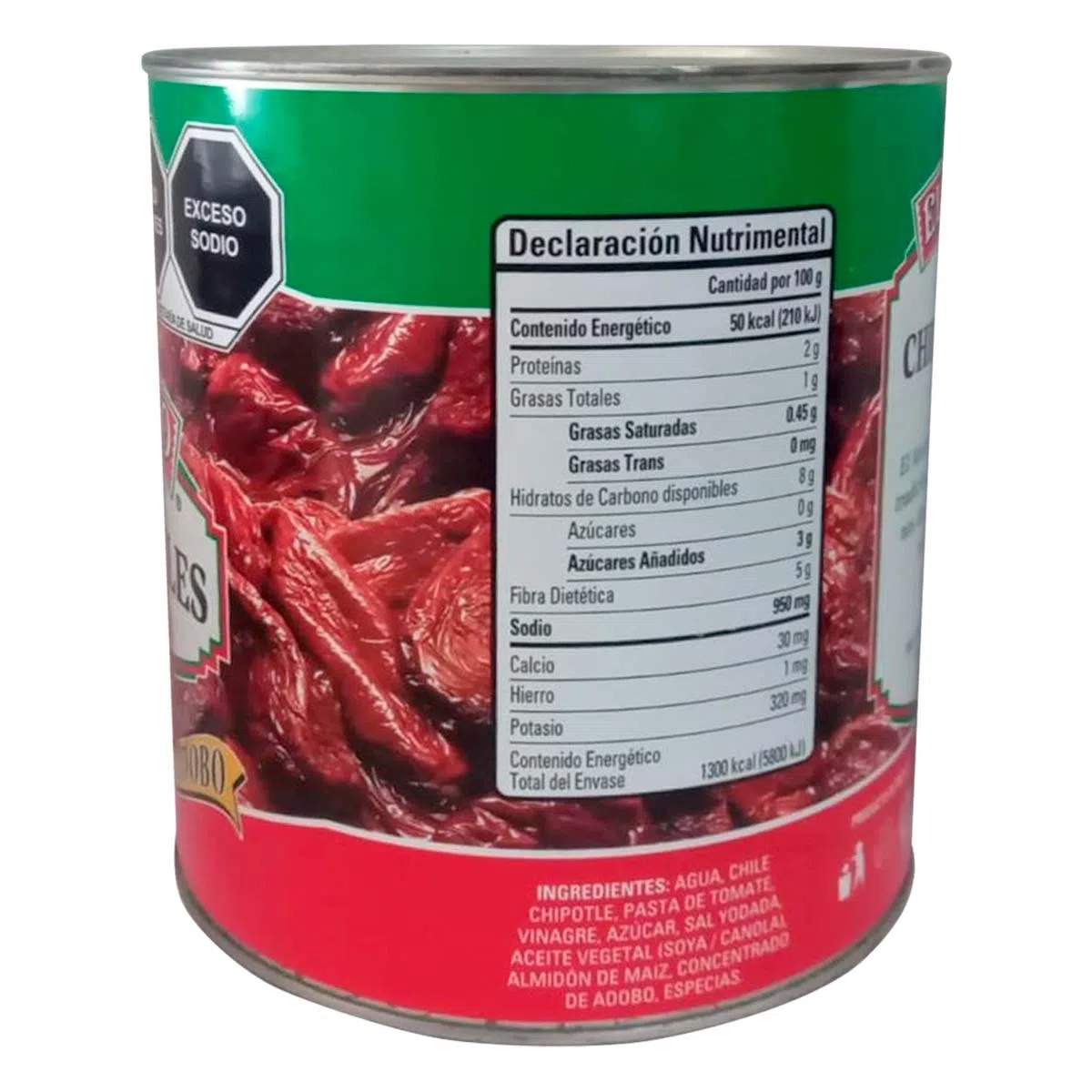 Lata de chiles chipotles de 2.84kg de El Mexicano.