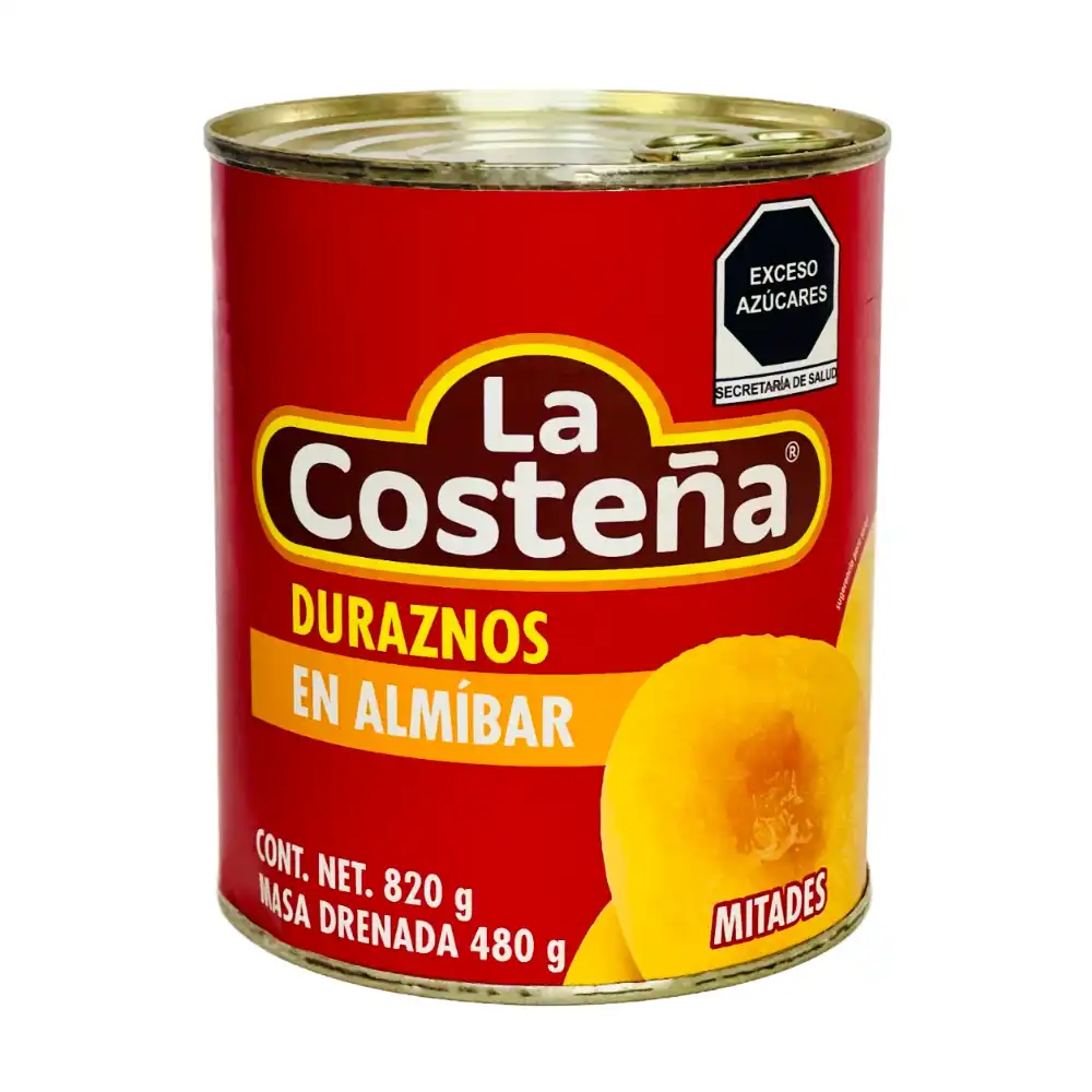 Lata de duraznos en almíbar en mitades de 820 g de La Costeña®.
