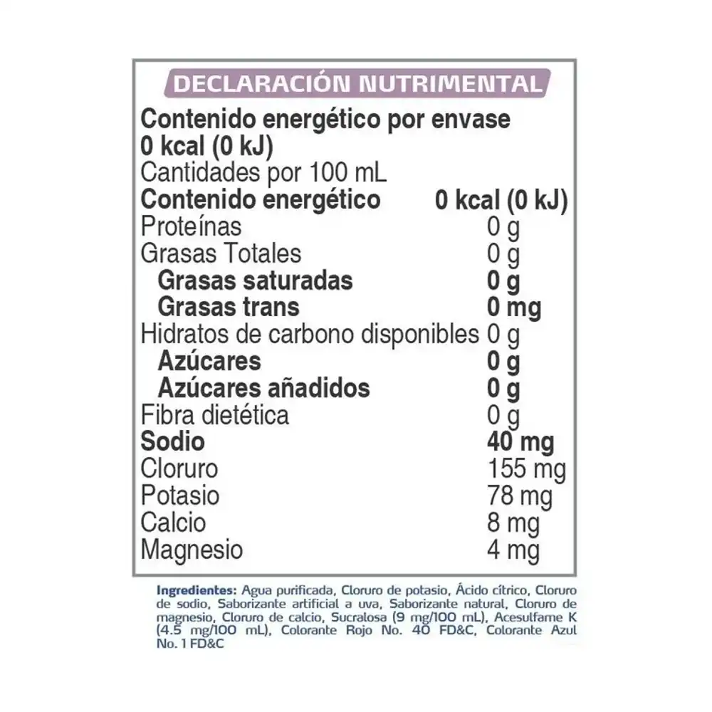 Electrolitos orales de Electrolito Zero sabor uva de 12pzs/625ml.