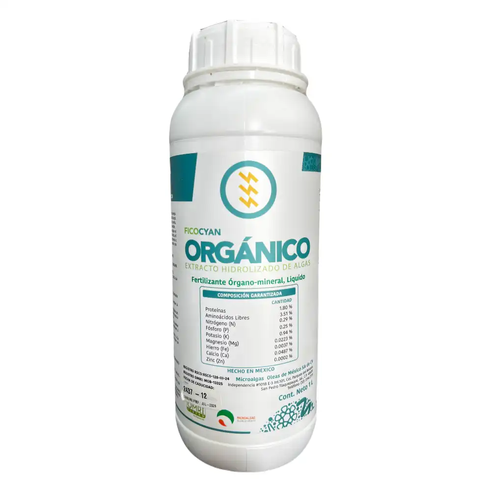 Fertilizante orgánico-mineral Ficocyan Orgánico de 1L.