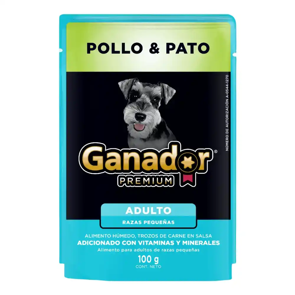 Alimento húmedo para perro Ganador premium sabor pollo y pato 22pzs/100gr.