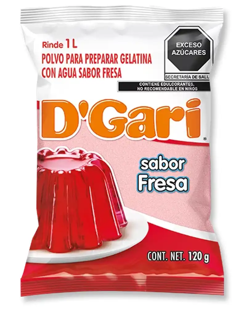 No te podrás resistir a la deliciosa Gelatina D’Gari sabor Fresa para preparar con leche. Se convertirá en una de tus favoritas al momento de crear increíbles postres. Es ideal para prepararla sola o para combinarla con otros sabores e ingredientes, además no contiene edulcorantes. Ponte creativo y prepara tu mejor receta. ¡Descubre la gran variedad de sabores que D’Gari tiene para ti en su presentación de bolsita!