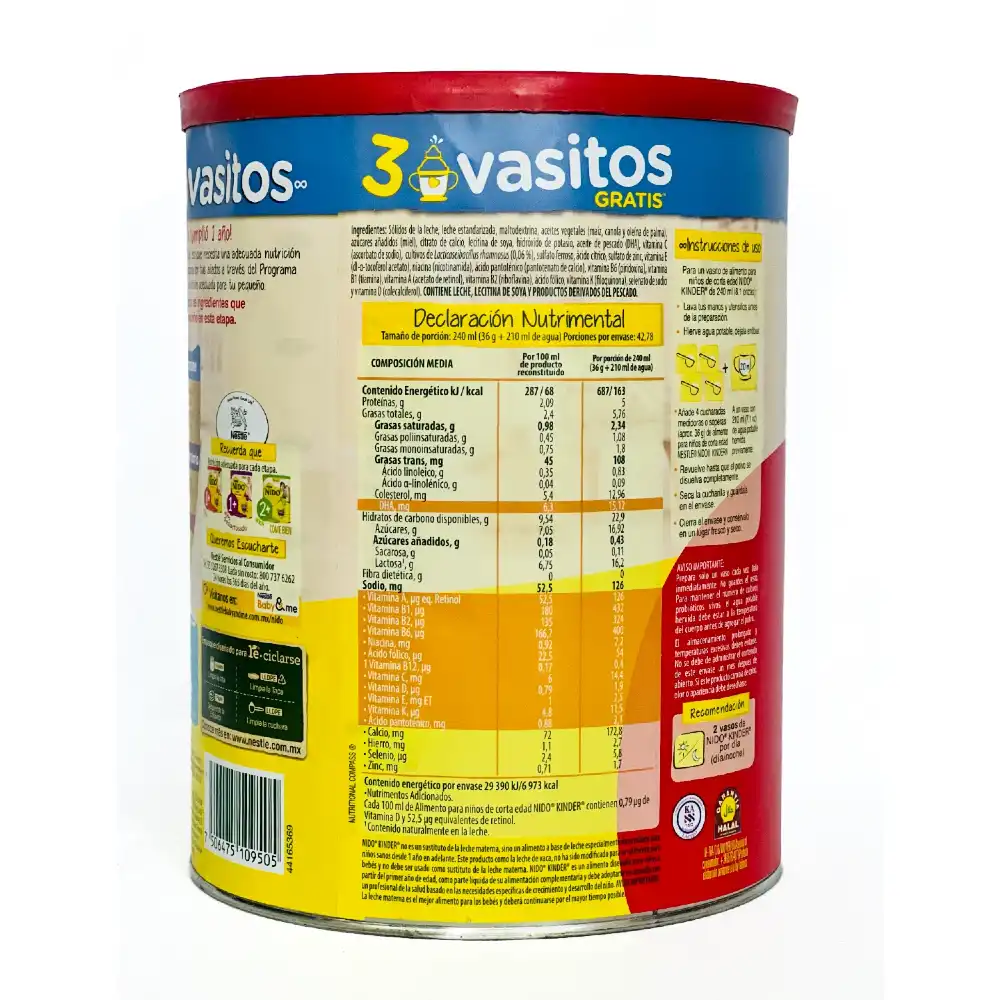 Nido Kinder 1+ es un alimento especialmente diseñado para niños de 1 a 2 años, ya que contiene los beneficios de la leche y además adicionamos nutrimentos esenciales para esta etapa como: Probióticos L. rhamnosus, así como 15 vitaminas y minerales.