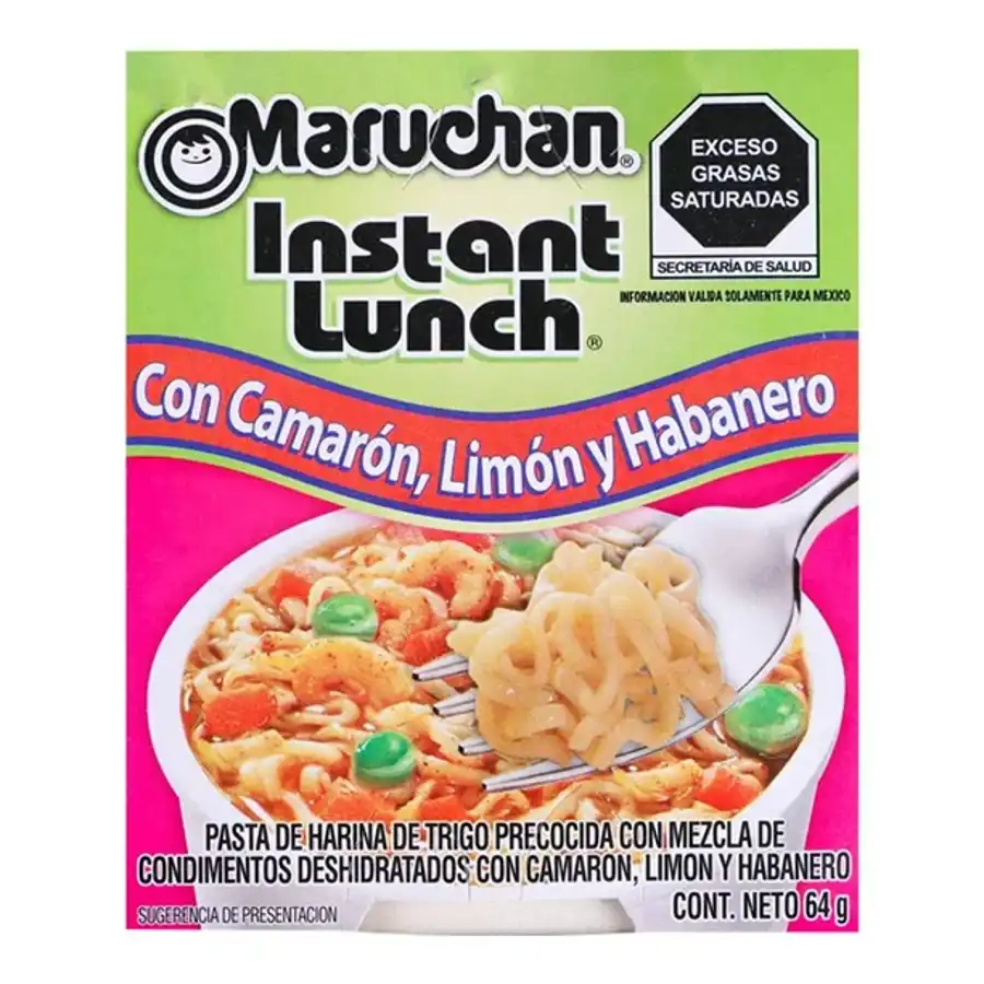 Maruchan Instant Lunch sabor camarón, limón y habanero de 64g en 1cja/12pzs.