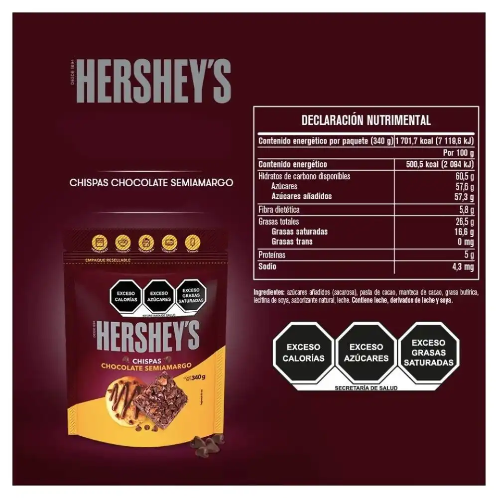 Prepara deliciosas creaciones y tus recetas favoritas con Chispas de Chocolate Semiamargo Hershey´s.