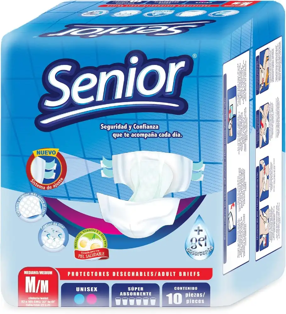 Pañal para adulto con diseño anatómico, cuenta con cubierta tipo tela de manzanilla con Aloe Vera y Vitamina E.
