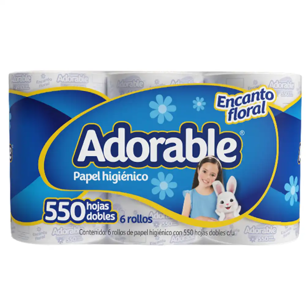 Papel Higiénico Adorable, al igual que su nombre lo dice, su textura y aroma harán de ésta presentación tu favorita, al igual su gran rendimiento de 550 hojas.
