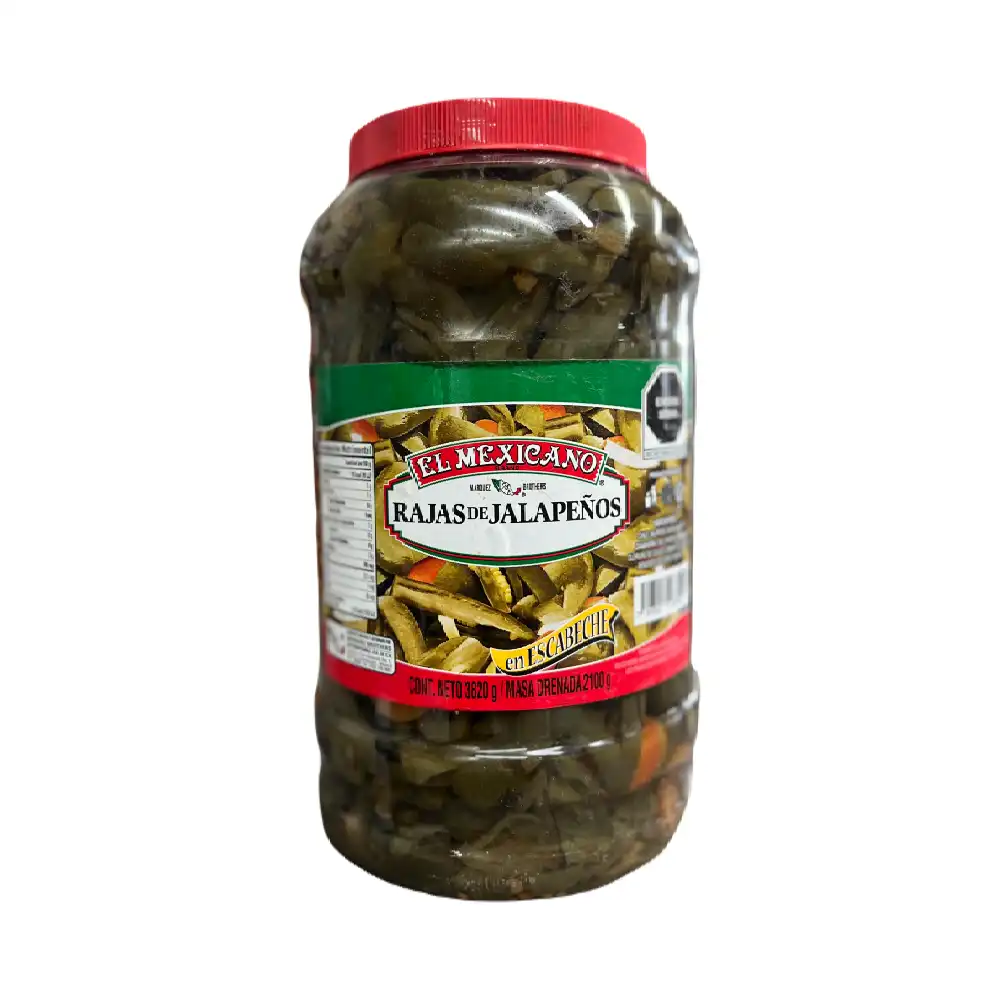 Vitrolero de rajas de jalapeño de 4pzs/3.82kg de El Mexicano.