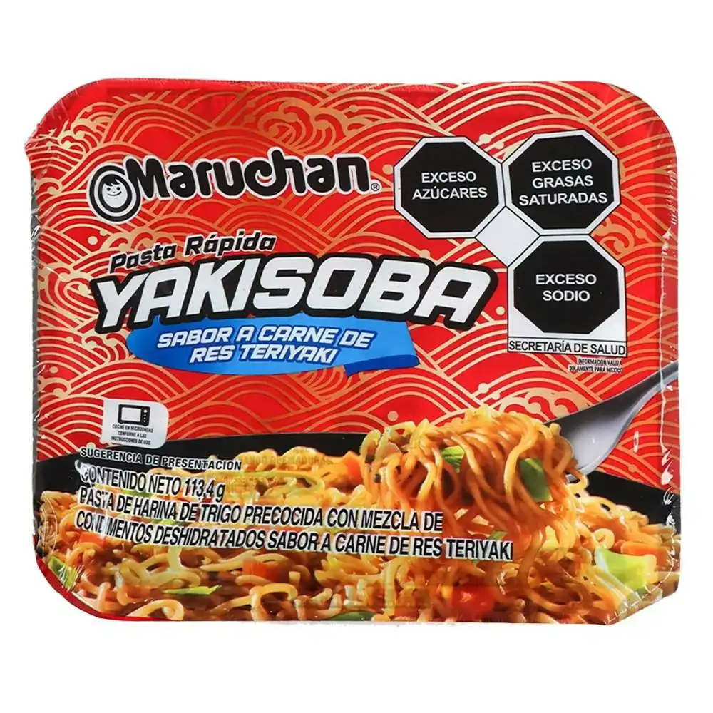 Yakisoba sabor res estilo teriyaki marca Maruchan es una sopa instantánea que podrás disfrutar en cualquier ocasión.